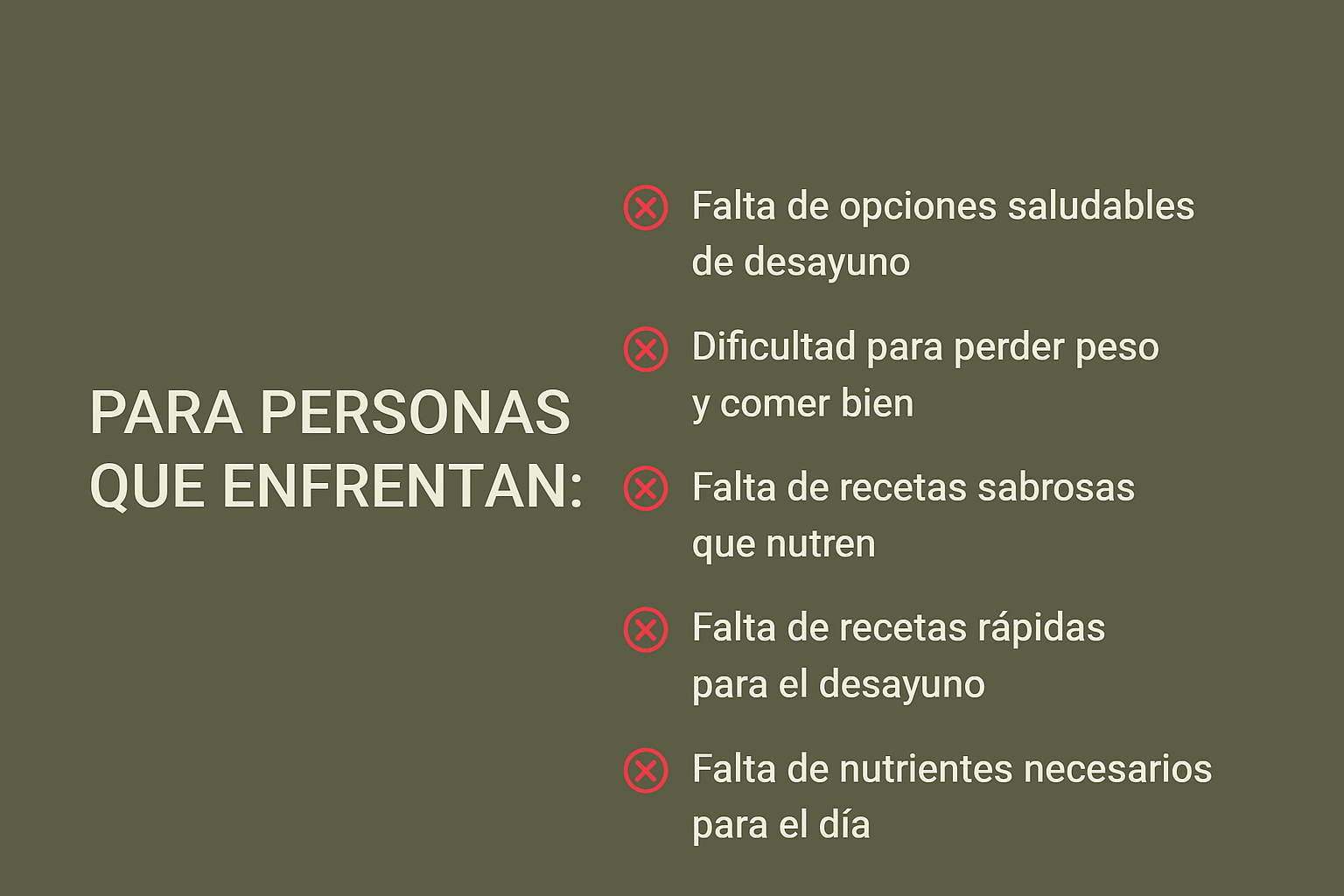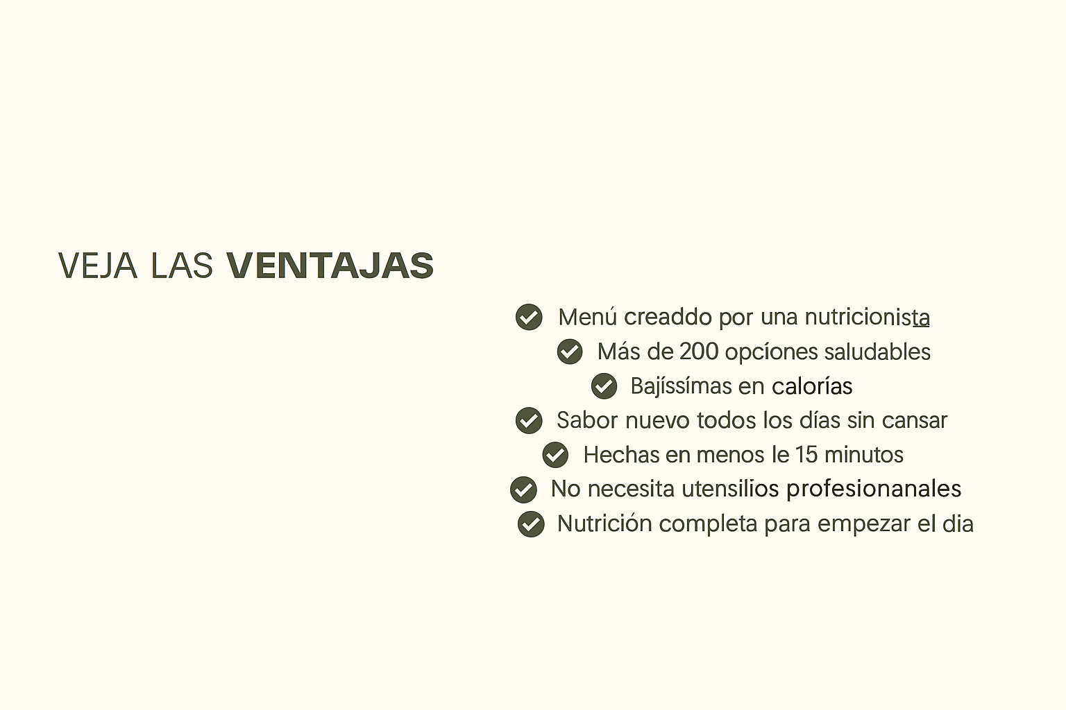 Ana García, nutricionista especializada en alimentación funcional, creó más de 200 recetas de desayunos saludables, realmente deliciosos y que están listos en menos de 15 minutos. Cada receta fue pensada para ofrecer todos los nutrientes que tu cuerpo necesita desde el inicio del día, con enfoque en el sabor y la practicidad.